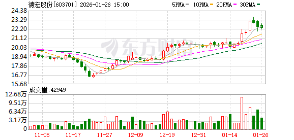 德宏股份发预减,预计2025年度归母净利润同比下降64.36%至76.24%