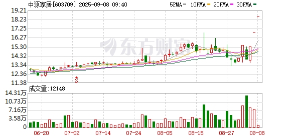 中源家居涨停走出3连板,3天累计涨幅达33.07%。