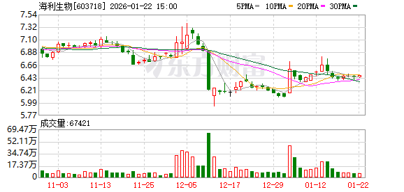 海利生物1月15日获融资买入952.22万元,融资余额2.11亿元