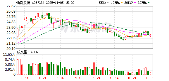 仙鹤股份涨2.24%,成交额2519.22万元,主力资金净流出79.20万元