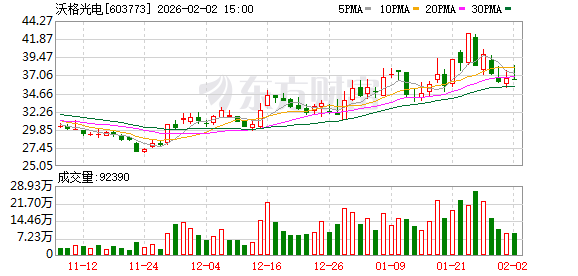 1月28日,沃格光电跌5.02%,截至发稿,报37.86元/股,成交2.32亿元,换手率2.68%,总市值85.06亿 元。 资料显示,江西沃格光电集团股份有限公司位于江西省新余高新技术产业开发区西城大道沃格工业园, 成立日期2009年12月14日,上市日期2018年4月17日,公司主营业务涉及FPD光电玻璃精加工业务。主 营业务收入构成为:光电显示器件51.83%,光电玻璃精加工29.63%,其他18.44%,其他(补充)0.10%。 从沃格光电十大流通股东角度 数据显示,长城基金旗下1只基金位居沃格光电十大流通股东。长城久嘉创新成长混合A(004666)三 季度持有股数550万股,持股数量与上期相比不变,占流通股的比例为2.45%。根据测算,今日浮亏损 失约1100万元。 长城久嘉创新成长混合A(004666)成立日期2017年7月5日,最新规模19.94亿。今年以来收益9.57%, 同类排名2362/8864;近一年收益105.54%,同类排名162/8126;成立以来收益229.33%。 长城久嘉创新成长混合A(004666)基金经理为尤国梁。 截至发稿,尤国梁累计任职时间6年99天,现任基金资产总规 ...