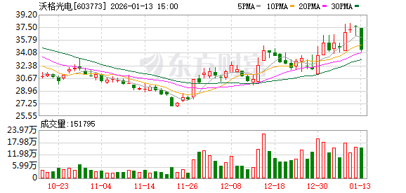 股价与交易表现 - 2025年1月14日盘中,公司股价报35.15元/股,上涨2.09%,总市值78.97亿元,当日成交额2.29亿元,换手率2.96% [1] - 当日资金流向显示主力资金净流出1380.56万元,其中特大单净卖出394.35万元,大单净卖出986.20万元 [1] - 公司股价近期表现分化,今年以来累计下跌0.65%,但近5日、近20日和近60日分别上涨1.18%、8.49%和13.83% [1] 公司基本概况 - 公司全称为江西沃格光电集团股份有限公司,成立于2009年12月14日,于2018年4月17日上市,总部位于江西省新余高新技术产业开发区 [1] - 公司主营业务为FPD光电玻璃精加工,主营业务收入构成为:光电显示器件51.83%,光电玻璃精加工29.63%,其他18.44%,其他(补充)0.10% [1] - 公司所属申万行业为电子-光学光电子-面板,所属概念板块包括折叠屏、商业航天(航天航空)、光刻机、OLED、MLED等 [1] 股东与股权结构 - 截至2025年12月10日,公司股东户数为2.31万户,较上期增加10.46%,人均流通股为9729股,较上期减少9.46% [2] - 截至2025年9月30日,十大流通股东中,长城久嘉创新成长混合A(004666)为第五大股东,持股550.00万股,持股数量未变,香港中央结算有限公司为新进第八大股东,持股191.98万股 [3] - 公司自A股上市后累计派现1.18亿元,近三年累计派现2136.46万元 [3] 财务业绩 - 2025年1月至9月,公司实现营业收入19.00亿元,同比增长15.66% [2] - 2025年1月至9月,公司归母净利润为-6694.27万元,同比减少35.45% [2]