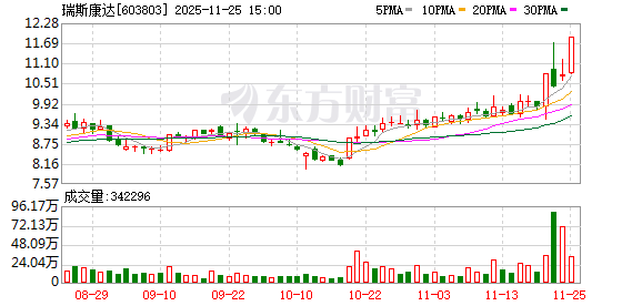 瑞斯康达(603803)今日涨停,全天换手率8.06%,成交额3.94亿元,振幅10.02%。龙虎榜数据显示,机 构净卖出519.51万元,营业部席位合计净买入3770.76万元。 上交所公开信息显示,当日该股因日涨幅偏离值达9.15%上榜,机构专用席位净卖出519.51万元。 证券时报·数据宝统计显示,上榜的前五大买卖营业部合计成交1.33亿元,其中,买入成交额为8296.57 万元,卖出成交额为5045.32万元,合计净买入3251.25万元。 具体来看,今日上榜的营业部中,共有1家机构专用席位现身,即卖五,合计净卖出519.51万元。 融资融券数据显示,该股最新(11月24日)两融余额为1.88亿元,其中,融资余额为1.88亿元,融券余 额为9.49万元。近5日融资余额合计增加5673.61万元,增幅为43.21%。融券余额合计增加6.09万元,增 幅179.29%。 10月30日公司发布的三季报数据显示,前三季度公司共实现营业收入8.46亿元,同比下降17.88%,实现 净利润-4708.52万元。(数据宝) 瑞斯康达11月25日交易公开信息 | 买/ | 会员营业部名称 | 买入金额(万 | 卖出金 ...