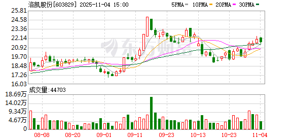 债券情况 - 2024年10月17日发行可转换公司债券403.431万张,募资40,343.10万元[4] - “洛凯转债”初始转股价15.45元/股,当前15.33元/股[5] - 2025年10月10日触发“洛凯转债”有条件赎回条款[5] 转股数据 - 截至2025年11月4日,“洛凯转债”累计转股15,246,225股[6] - 2025年10月31日至11月4日,“洛凯转债”合计转股2,664,152股[6] 股本与股权 - 本次权益变动后公司总股本为175,246,225股[6] - 第一大股东及其一致行动人持股比例由50.76%稀释至49.99%[3][6] - 洛辉、洛腾、洛盛投资持股比例均下降[6]