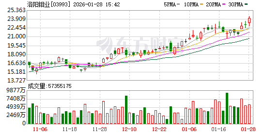摩根大通发布研报称,洛钼电话会议进一步强化该行对公司策略与营运的正面看法。主要业务更新包 括:巴西金矿收购顺利完成,管理层目标今年黄金产量6至8吨,并于2030年前达20吨;以及今年铜产量 指引细节,由工艺优化及KFM二期产能上升所支持。该行上调对洛钼今明两年盈利预测27%至30%,并 上调洛钼A股及H股目标价。 洛阳钼业(603993)(03993)尾盘涨超6%,截至发稿,涨5.51%,报24.14港元,成交额13亿港元。 消息面上,1月25日,洛阳钼业发布公告表示,其通过控股子公司收购加拿大上市公司Equinox Gold Corp.旗下Aurizona金矿、RDM金矿和Bahia综合矿区100%权益的交易已经于1月23日完成交割。四座金 矿均为在产金矿,2026年将为公司带来6-8吨的黄金年产量。 ...