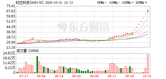 证券代码:605178 证券简称:时空科技 公告编号:2025-079 北京新时空科技股份有限公司 股票交易异常波动暨风险提示公告 本公司董事会、全体董事及相关股东保证本公告内容不存在任何虚假记载、 误导性陈述或者重大遗漏,并对其内容的真实性、准确性和完整性承担法律责任。 重要内容提示: 1 公司股票价格于 2025 年 10 月 29 日、10 月 30 日连续两个交易日收盘价 格涨幅偏离值累计超过 20%,根据《上海证券交易所交易规则》的有关 规定,属于股票交易异常波动的情形。 公司股票价格自 2025 年 9 月以来累计上涨 170.93%,10 月 23 日至 30 日期间三次触及股票交易异常波动指标,累计上涨 77.17%。公司股价短 期上涨幅度较大,存在市场情绪过热、非理性炒作风险,已严重偏离同 期上证指数和装修装饰行业指数,且严重偏离公司基本面,随时存在快 速下跌风险。 公司最新市净率显著高于同行业上市公司水平。公司所属的行业分类 "E50 建筑装饰、装修和其他建筑业"最新行业市净率为 2.32 倍,公 司最新市净率为 4.96 倍,显著高于同行业上市公司水平。 2021 年至 2025 年 1 ...