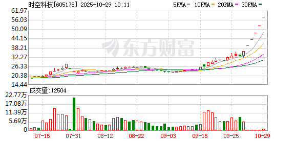 近日该股表现 | 日期 | 当日涨跌幅(%) | 换手率(%) | 主力资金净流入(万元) | | --- | --- | --- | --- | | 2025.10.28 | 10.00 | 0.35 | 1479.06 | | 2025.10.27 | 10.01 | 0.41 | 825.99 | | 2025.10.24 | 10.00 | 0.21 | 373.33 | | 2025.10.23 | 9.99 | 0.45 | 1431.06 | | 2025.09.30 | 10.01 | 5.81 | 581.71 | | 2025.09.29 | -4.35 | 8.57 | -3109.75 | | 2025.09.26 | 3.62 | 6.28 | 1079.84 | | 2025.09.25 | 3.24 | 8.50 | 1273.90 | | 2025.09.24 | 6.42 | 5.95 | -204.97 | | 2025.09.23 | -1.71 | 6.13 | -643.48 | (文章来源:证券时报网) 时空科技盘中涨停,已连收5个涨停板,截至9:25,该股报57. ...