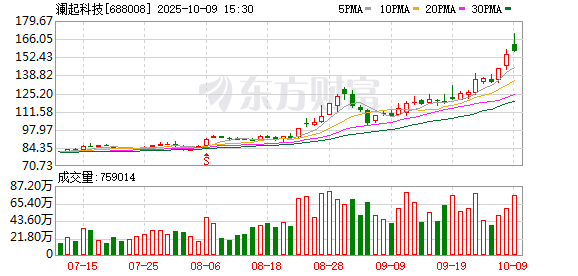 | 交易日期 | 证券简称 | 证券代码 | 成交价(元) 成交金额(万元) 成交量( * ) 买入营业部 | | | | | 卖出营业部 | | --- | --- | --- | --- | --- | --- | --- | --- | --- | | 2025-10-09 | 澜起科技 | 688008 | 136 | 2040 | । | 东北证券股份有限 公司福州新权青露 香格 | 长城证券股份喜暨 公司福州至四路证 发营北 | | 10月9日,澜起科技大宗交易成交15万股,成交额2040万元,占当日总成交额的0.17%,成交价136元,较市场收盘价157.08元折价13.42%。 ...