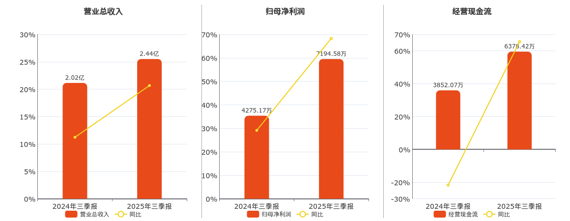 天臣医疗:2025年第三季度归属于上市公司股东的净利润同比增长70.74%