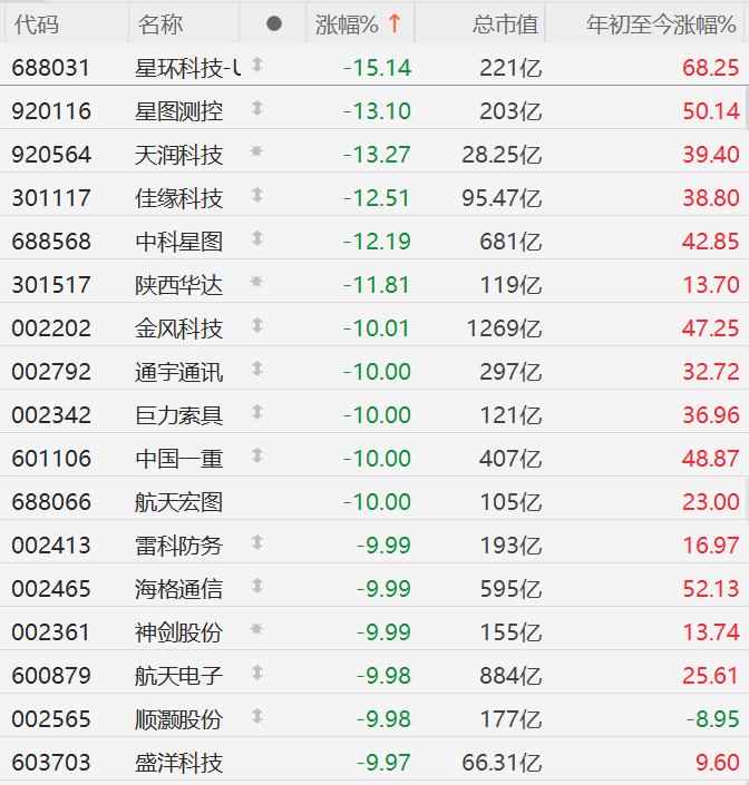 A股异动丨商业航天板块连续第三日出现回调,航天电子、通宇通讯等多股跌停