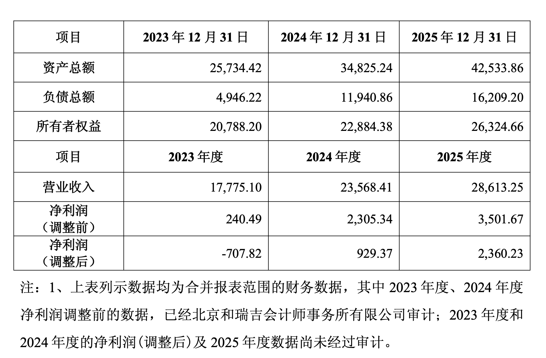 财务指标方面,截至2025年底,德美医疗资产总额4.25亿元,负债总额1.6亿元,所有者权益2.6亿元,2025年度营收2.86亿元,净利润(调整前)3501.67万 元,净利润(调整后)2360.23万元。 | 项目 | 2023 年 12 月 31 日 | 2024 4 | | --- | --- | --- | | 资产总额 | 25.734.42 | | | 负债总额 | 4.946.22 | | | 所有者权益 | 20.788.20 | | | 项目 | 2023 年度 | 21 | | 营业收入 | 17.775.10 | | | 浄利润 (调整前) | 240.49 | | | 浄利润 (调整后) | -707.82 | | 公告显示,德美医疗成立于2016年7月12日,注册资本超1214万元,法定代表人、董事长、总经理均为黎建波,其直接持有德美医疗14.7994%股份,其配偶 蒲晓露直接持有德美医疗5.8011%股权;黎建波与配偶蒲晓露通过直接或间接持股以及与其他部分股东签署一致行动协议的方式合计控制43.3825%股权。 德美医疗战略布局覆盖从术前预防到手术治疗,再到术后康复的运动健康全领 ...