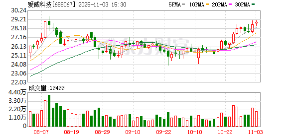 爱威科技11月3日现1笔大宗交易 总成交金额303.38万元 溢价率为-4.50%