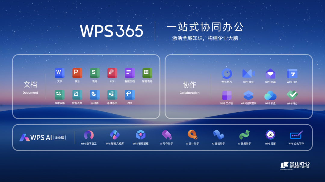 产品升级概述 - 金山办公举办WPS 365 AI协同办公大会,宣布WPS 365正式升级为全球一站式AI协同办公平台 [1] - 推出WPS灵犀企业版、团队空间、轻舟引擎等新产品,并对智能文档库、数字员工两大AI核心产品进行升级 [1][5] 新产品功能细节 - 团队空间能集合团队相关的消息、文档、会议纪要等内容,方便团队精准用AI获取业务知识,解决群聊信息繁杂痛点 [1][5] - 智能文档库应用KAG(知识增强生成架构)和KDC(知识数据中心),帮助用户用AI更好使用企业私域知识,支持模糊关键词查找和主题扩充搜索 [5][6] - 数字员工升级至2.0版本,可像真实同事一样沟通、处理和解决问题,能总结工作、生成群待办、解读文档邮件、写周报等 [1][6] - 轻舟引擎和WPS灵犀企业版整合消息、文档、会议、邮件、工作台和智能文档库等全产品矩阵 [3][9] 成本与竞争优势 - 升级后WPS 365能提供Microsoft Office、Zoom、Adobe PDF等多种产品的功能,但总体成本甚至不到行业平均水平的三分之一 [4] 行业定位与愿景 - 公司判断AI时代协同办公软件会变成知识的容器、数字员工的载体以及能力服务的提供方,帮助企业和组织构建独有的企业大脑 [1][11] - 办公由文档处理和日常沟通两部分组成,新协同方式将文档和沟通工具结合,协同围绕人与人、人和事、人和知识 [7] - WPS AI的定位从工具助手向企业大脑和个人办公的智慧助理演进,重点帮助企业做私域知识的收集、管理与应用 [10] 应用案例与成效 - 大型政策性银行农发行依托WPS 365打造办公门户,通过待办中心一键响应审批需求,每天有30万条待办及已办数据协同流转,每日预计为银行节省超2000小时工时 [9] - AI中台已在多个行业中应用,如让企业云盘获得数据知识化能力实现文档智能检索和分析,增强合同审计业务的文档智能解析能力 [10]