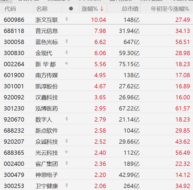 部分AI应用股上涨,浙文互联涨停,蓝色光标涨超6%
