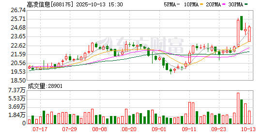 10月13日,高凌信息大宗交易成交81.2万股,成交额1688.96万元,占当日总成交额的19.36%,成交价20.8元,较市场收盘价24.77元折价16.03%。 | 交易日期 | 证券简称 | 证券代码 | | | 成交价(元) 成交金额(万元) 成交量(*) 买入营业部 | | 卖出营业部 | | --- | --- | --- | --- | --- | --- | --- | --- | | 2025-10-13 | 高凌信息 | 688175 | 20.8 | 1171.04 | 56.3 | 华泰证券股份有限 公司北京分公营 | 中国银河证券股份 有限公司郑州如意 | | 2025-10-13 | 高凌信息 | 688175 | 20.8 | 309.92 | 14.9 | 华泰证券股份有限公司北京分公司北京分公司北京分公司 | 中國银河班券股份 | | 2025-10-13 | 高凌信息 | 688175 | 20.8 | 208 | 10 | 发古荣发给其露 | 中国银河证券股份 有限公司郑州如意 | ...