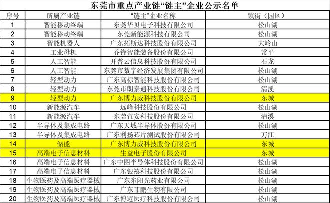 东莞2025重点产业链“链主”名单公布,东城两家企业入选