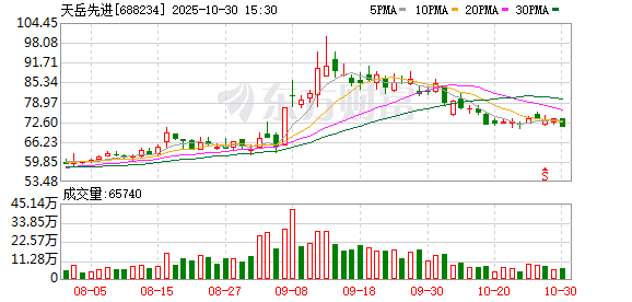 公司股价与资金流向 - 10月29日盘中股价下跌2.04%,报71.68元/股,成交2.08亿元,换手率0.67%,总市值347.37亿元 [1] - 主力资金净流出2652.46万元,特大单买卖占比分别为7.42%和16.53%,大单买卖占比分别为25.01%和28.64% [1] - 今年以来股价累计上涨40.00%,但近期表现分化,近5日下跌1.19%,近20日下跌14.02%,近60日上涨17.97% [1] - 今年以来1次登上龙虎榜,最近一次为9月5日,龙虎榜净买入额为-2862.82万元,买卖总金额占比分别为15.90%和17.23% [1] 公司基本面与财务表现 - 公司主营业务为碳化硅衬底的研发、生产和销售,其收入构成中碳化硅半导体材料占比82.83%,其他业务占比17.17% [1] - 2025年1-9月实现营业收入11.12亿元,同比减少13.21%,归母净利润111.99万元,同比大幅减少99.22% [2] - 截至2025年9月30日,股东户数为2.96万,较上期大幅增加73.90%,人均流通股为14537股,较上期减少17.70% [2] 行业归属与机构持仓 - 公司所属申万行业为电子-半导体-半导体材料,概念板块包括华为概念、碳化硅、中盘、专精特新、第三代半导体等 [2] - 截至2025年9月30日,十大流通股东中,易方达上证科创板50ETF持股621.26万股,较上期减少90.70万股,华夏上证科创板50成份ETF持股607.62万股,较上期减少355.17万股 [2] - 银河创新混合A和嘉实上证科创板芯片ETF已退出十大流通股东之列 [2] 公司基本信息 - 公司全称为山东天岳先进科技股份有限公司,成立于2010年11月2日,于2022年1月12日上市 [1] - 公司注册地址位于山东省济南市槐荫区天岳南路99号,并在香港设有办公地点 [1]