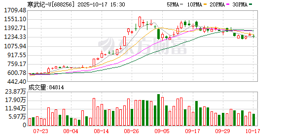 10月17日晚间,寒武纪公告,2025年前三季度公司实现营业收入46.07亿元,同比增长2386.38%;归属 于上市公司股东的净利润16.05亿元。基本每股收益3.85元。连续四个季度实现盈利。 寒武纪多个财务指标呈现暖意,截至三季度末,公司预付款项、存货规模分别达到6.90亿元、37.29亿 元,其中存货较二季度末增长38.62%。研发投入方面,公司前三季度研发投入合计7.15亿元,同比增长 8.45%,研发投入强度超过15%。 对于业绩增长的原因,寒武纪在报告中提到,营业收入的增长主要系公司持续拓展市场,积极助力人工 智能应用落地,使得报告期内收入较上年同期大幅增长;利润的增长主要系营业收入较上年同期大幅增 长,使得利润总额、归属于上市公司股东的净利润、归属于上市公司股东的扣除非经常性损益的净利润 均实现扭亏为盈所致。 值得注意的是,三季度"牛散"章建平继续加仓,由半年报披露的608.63万股,增至640.65万股,增持了 32.02万股。2024年四季度,章建平进入寒武纪前十大股东之列,彼时持股数量为533.88万股。2025年一 季度,章建平增持了74.75万股。 从二级市场表现来看,寒武纪在今年第 ...