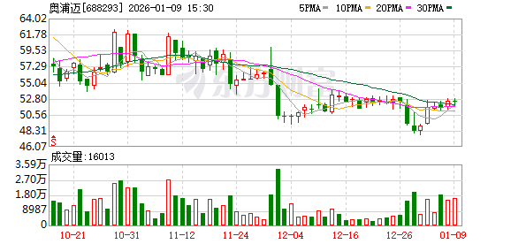 分红方面,奥浦迈A股上市后累计派现1.73亿元。 融券方面,奥浦迈12月31日融券偿还0.00股,融券卖出0.00股,按当日收盘价计算,卖出金额0.00元; 融券余量0.00股,融券余额0.00元,超过近一年90%分位水平,处于高位。 资料显示,上海奥浦迈生物科技股份有限公司位于上海市浦东新区紫萍路908弄28号楼,成立日期2013 年11月27日,上市日期2022年9月2日,公司主营业务涉及从事细胞培养产品与服务。主营业务收入构成 为:产品87.34%,服务12.53%,其他0.13%。 截至9月30日,奥浦迈股东户数3682.00,较上期增加14.63%;人均流通股30838股,较上期增加 27.96%。2025年1月-9月,奥浦迈实现营业收入2.72亿元,同比增长25.79%;归母净利润4942.53万元, 同比增长81.48%。 12月31日,奥浦迈涨1.55%,成交额3333.69万元。两融数据显示,当日奥浦迈获融资买入额174.97万 元,融资偿还294.51万元,融资净买入-119.54万元。截至12月31日,奥浦迈融资融券余额合计9401.57 万元。 融资方面,奥浦迈当日融资买入174.97 ...