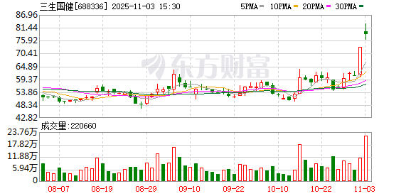 (文章来源:证券日报) 证券日报网讯 11月3日晚间,三生国健发布公告称,公司股票交易连续两个交易日内(2025年10月31 日、2025年11月3日)日收盘价格涨幅偏离值累计超过30%,属于股票交易异常波动情形。公司自查并 向控股股东及实际控制人核实,截至本公告披露日,除公司已披露信息外,公司及公司控股股东、实际 控制人不存在筹划关于公司的应披露而未披露的重大事项的情况,公司日常经营情况正常,未发生重大 变化,所处的行业政策未发生重大调整。 ...