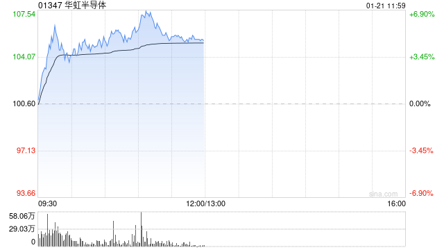 华虹半导体午前涨逾5% 集团的8英寸晶圆代工产能利用率已超100%