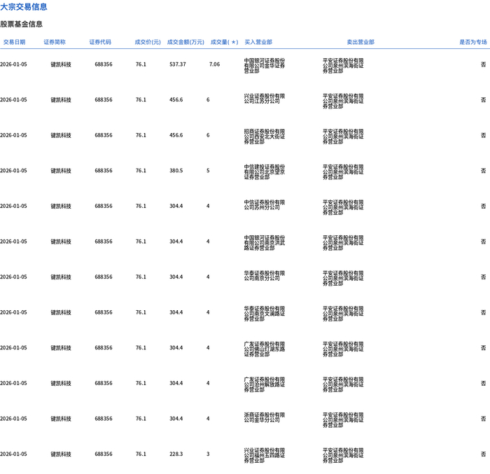 证券代码:688356 证券简称:键凯科技 公告编号:2026-002 北京键凯科技股份有限公司 持股 5%以上股东减持股份计划公告 本公司董事会、全体董事及相关股东保证本公告内容不存在任何虚假记载、 误导性陈述或者重大遗漏,并对其内容的真实性、准确性和完整性依法承担法律 责任。 重要内容提示: 因股东自身资金需求,吴凯庭计划自本公告披露之日起 15 个交易日后 的 3 个月内,通过集中竞价或大宗交易方式减持公司股票不超过总股 本的 3%。其中 集中竞价减持数量不超过 606,507 股,占公司总股本的 比例不超过 1%;大宗交易减持数量不超过 1,213,014 股,占公司总股 本的比例不超过 2%。 本次减持计划的减持价格按市场价格确定。若减持期间公司有派息、 送股、资本公积金转增股本、配股等除权除息事项,减持计划将进行 相应调整。 公司于近日收到股东吴凯庭先生出具的《关于股份减持计划的告知函》,现 将具体情况公告如下: 一、减持主体的基本情况 | 股东名称 | 吴凯庭 | | | --- | --- | --- | | 股东身份 | 控股股东、实控人及一致行动人 | □是 √否 | 1 大股东持有的基本 ...