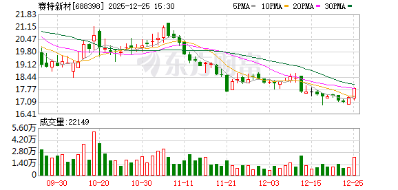 赛特新材于2020年2月11日在上交所科创板上市,公开发行新股2,000万股,发行价格为24.12元/股,保 荐人(主承销商)为兴业证券股份有限公司,保荐代表人为张俊、王亚娟。 中国经济网北京12月25日讯 赛特新材(688398.SH)昨日晚间发布控股股东、实际控制人减持股份计划公 告。 赛特新材控股股东、实际控制人、董事长汪坤明因个人资金需求,拟通过大宗交易、集中竞价方式合计 减持赛特新材股份不超过5,034,423股,不超过赛特新材总股本的3.00%。 截至公告披露日,汪坤明持有赛特新材股份66,691,300股,占赛特新材总股本167,814,101股的39.74%。 截至减持股份预披露公告披露前最后一个交易日,即2025年12月24日,赛特新材收报17.34元,以此计 算,汪坤明本次减持金额预计为8,729.69万元。 赛特新材首次公开发行股票的发行费用总额为5,929.85万元,其中,保荐费用及承销费用5,061.51万元。 赛特新材于2023年向不特定对象发行可转换公司债券。经中国证券监督管理委员会《关于同意福建赛特 新材股份有限公司向不特定对象发行可转换公司债券注册的批复》(证监许可[2022 ...