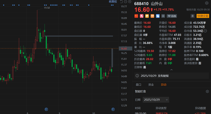 A股异动|Q3利润翻2倍,山外山大幅高开11.78%,为A股涨幅之最