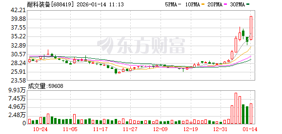 资金面上,耐科装备上一交易日主力资金净流出1139.36万元,近5日净流出1590.40万元。 融资融券数据显示,该股最新(1月13日)两融余额为6587.85万元,其中,融资余额为6587.85万元,较 上一个交易日减少1421.35万元,降幅为17.75%;近10日两融余额合计增加1324.88万元,增幅为 25.17%,其间融资余额增长25.17%。(数据宝) 1月14日盘中科创板股耐科装备涨停,截至10:18,股价报40.54元,成交2.14亿元,换手率9.61%,振幅 18.74%。 科创板个股中,截至发稿上涨的共有534只,涨幅在10%以上的共有17只,涨幅较高的有耐科装备、光 云科技、卓易信息等,分别上涨20.01%、20.00%、17.71%,下跌的有61只,跌幅较大的有荣昌生物、 呈和科技、中科通达,分别下跌5.64%、5.09%、3.51%。 (文章来源:证券时报网) ...