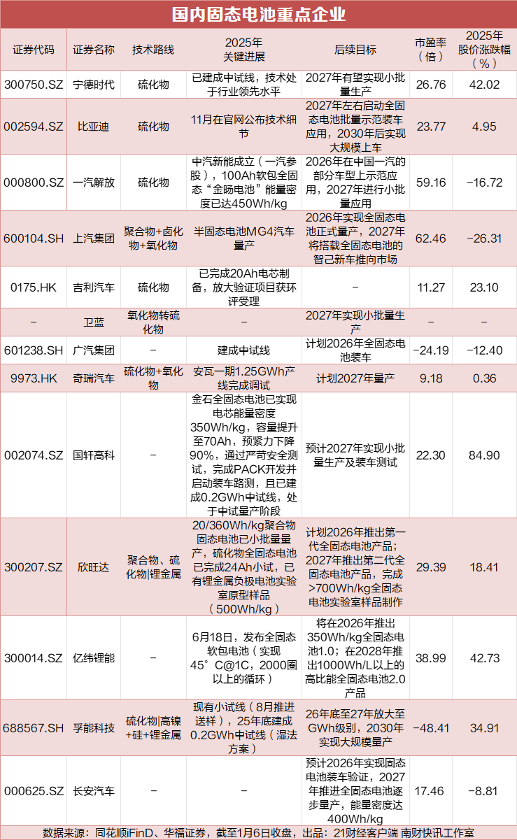 公司技术进展 - 公司已完成第二代硫化物全固态电池的技术开发 [1] - 该电池采用富锂锰基/高镍三元正极与锂金属负极 [1] - 电池具备热失控自关断功能 [1] - 电池能量密度已提升至500Wh/kg [1] 产品规划与客户 - 公司计划于2026年推出该产品 [1] - 后续产品进展及客户情况需关注公司信息披露 [1]