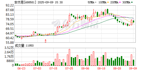 安杰思今日大宗交易折价成交10万股,成交额749.4万元