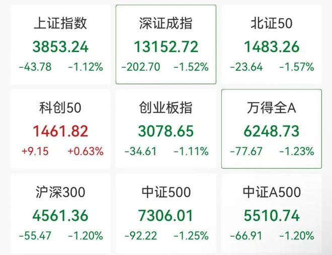 A股市场表现 - 10月13日A股三大指数大幅低开,截至9:45沪指跌1.12%至3853.24点,深成指跌1.52%至13152.72点,创业板指跌1.11%至3078.65点 [1] - 消费电子和算力硬件板块跌幅居前 [1] - 科创50指数逆势上涨0.63%至1461.82点,而沪深300指数跌1.20%,中证500指数跌1.25% [2] - 富时中国A50指数期货在夜盘收跌4.26%的基础上高开,现跌1.2% [3] 个股异动 - 上纬新材跌停开盘,该股年内累计涨幅近19倍 [2] - 公司公告称未来36个月内,智元创新不存在通过上市公司借壳上市的计划或安排 [2] 其他市场动态 - 加密货币市场出现强劲反弹,导致超18万人爆仓 [4] - 黄金价格再创新高 [4] - A股市场再现天价离婚案例,涉及分手费近34亿元 [4]