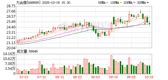 股价表现与交易数据 - 10月20日盘中股价上涨2.04%至23.98元/股,成交金额883.85万元,换手率0.25%,总市值34.85亿元 [1] - 当日主力资金净流出6.94万元,大单买入193.82万元占比21.93%,大单卖出200.76万元占比22.71% [1] - 公司今年以来股价上涨6.24%,近5个交易日下跌9.06%,近20日下跌4.92%,近60日上涨10.00% [2] 公司基本概况 - 公司全称为深圳市力合微电子股份有限公司,成立于2002年8月12日,于2020年7月22日上市 [2] - 主营业务为通信类芯片的研发及设计,收入构成:基于自研芯片及核心技术的产品占94.84%,自主芯片占4.85%,其他(补充)占0.23%,其他配套产品占0.08% [2] - 所属申万行业为电子-半导体-数字芯片设计,概念板块包括芯片概念、智能家居、半导体、专精特新、集成电路等 [2] 股东结构与财务表现 - 截至6月30日股东户数1.11万户,较上期减少5.22%,人均流通股13110股,较上期增加26.54% [2] - 2025年1-6月实现营业收入1.98亿元,同比减少24.74%,归母净利润2484.56万元,同比减少41.15% [2] - A股上市后累计派现1.31亿元,近三年累计派现9642.61万元 [3]
