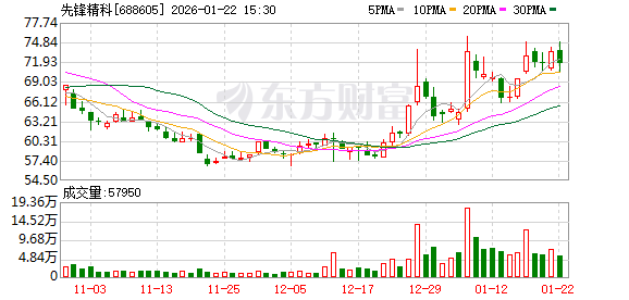 1月27日,先锋精科涨5.11%,截至发稿,报72.96元/股,成交3.55亿元,换手率4.63%,总市值147.66亿 元。 资料显示,江苏先锋精密科技股份有限公司位于江苏省靖江市经济开发区新港大道195号,成立日期 2008年3月20日,上市日期2024年12月12日,公司主营业务涉及国内半导体刻蚀和薄膜沉积设备细分领 域关键零部件的精密制造。主营业务收入构成为:工艺部件71.38%,结构部件19.61%,其他部件 3.83%,模组3.79%,表面处理0.83%,其他(补充)0.56%。 从先锋精科十大流通股东角度 数据显示,诺安基金旗下1只基金位居先锋精科十大流通股东。诺安成长混合A(320007)三季度持有 股数64.98万股,持股数量与上期相比不变,占流通股的比例为1.61%。根据测算,今日浮盈赚取约 230.68万元。 诺安成长混合A(320007)成立日期2009年3月10日,最新规模141.02亿。今年以来收益11.82%,同类 排名1122/8861;近一年收益50.89%,同类排名1886/8126;成立以来收益218.88%。 诺安成长混合A(320007)基金经理为刘慧影。 截至发稿, ...