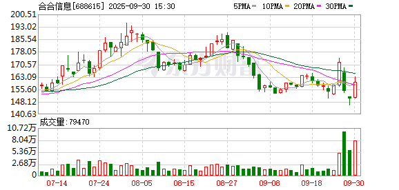 9月30日,合合信息大宗交易成交32.7万股,成交额4803.96万元,占当日总成交额的3.67%,成交价146.91元,较市场收盘价159.68元折价8%。 | 交易日期 | 证券简称 | 证券代码 | 成交价(元) | | 成交金额(万元) 成交量( * ) 买入营业部 | | 卖出营业部 | | --- | --- | --- | --- | --- | --- | --- | --- | | 2025-09-30 | 合合信息 | 688615 | 146.91 | 2938.2 | 20 | 机构专用 | 有限公司正屬兼望 | | 2025-09-30 | 合合信息 | 688615 | 146.91 | 881.46 | 6 | 机构专用 | 有限公司 | | 2025-09-30 | 合合信息 | 688615 | 146.91 | 587.64 | 4 | 机构专用 | 有限公司正屬美容 | | 2025-09-30 | 合合信息 | 688615 | 146.91 | 396.66 | 2.7 | 机构专用 | 有限公司 | ...