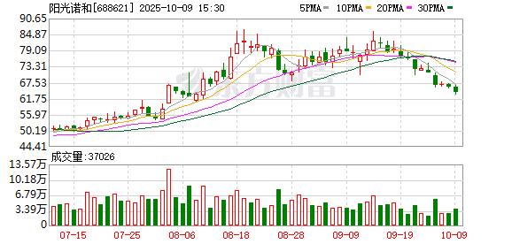 10月9日,阳光诺和大宗交易成交35万股,成交额2212万元,占当日总成交额的8.45%,成交价63.2元,较市场收盘价64.16元折价1.5%。 | 交易日期 | 证券简称 | 证券代码 | 成交价(元) 成交金额(万元) 成交量( * ) 买入营业部 | | | 卖出营业部 | | --- | --- | --- | --- | --- | --- | --- | | 2025-10-09 | 阳光诺和 | 688621 | 63.2 2212 | 35 | 机构专用 | 东吴证券股份有限 公司苏州工业园区 | ...