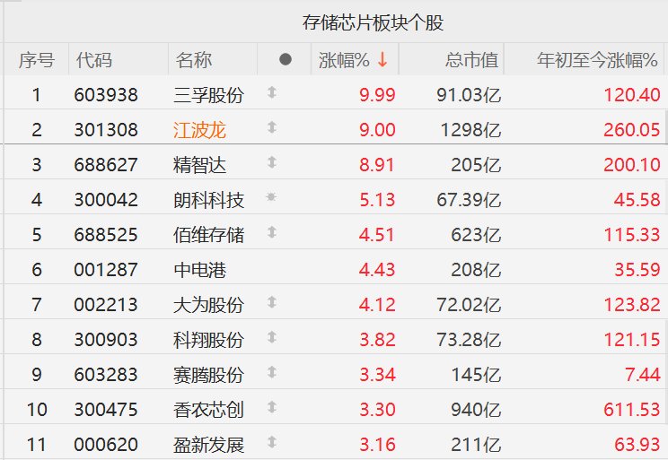 存储芯片概念继续走强,三孚股份2连板,江波龙再创新高