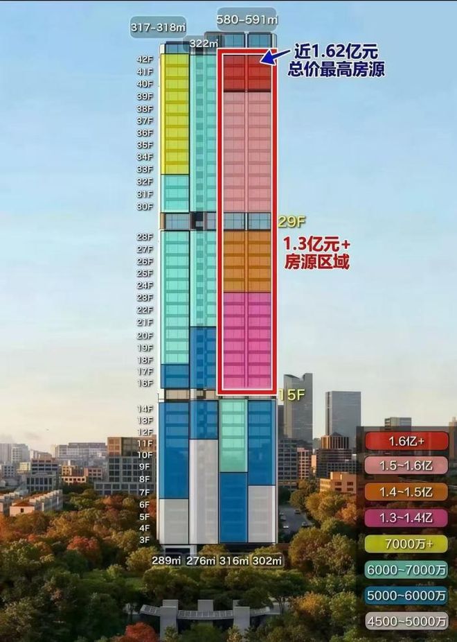 (高福云境售价分布图。受访者/图) 中经记者 郭阳琛 石英婧 上海报道 均价21万元/平方米、单套最高售价超1.6亿元……10月以来,因稀缺性和高价格,加之知名演员胡歌曾 现场看房,位于上海市衡复历史文化风貌区的高福云境项目备受关注。 《中国经营报》记者从上海万科方面采访了解到,高福云境项目首开125套房源收到190组认筹,认筹率 约152%,开盘时间因此提前了一周。开盘首日,单套户型面积近600平方米、总价1.3亿—1.7亿元的25 套"大平层"全部售罄。 值得关注的是,在高福云境项目"一鸣惊人"背后,是长达24年的漫长旧改路。记者多方采访获悉,该项 目的前身为上海高福里,始建于20世纪20年代。早在2001年,上海市本土房企华洲地产便就高福里旧改 成立了项目公司,但一直未能推进项目开发。2021年,在通过旧改意愿征询的同时,华洲地产找来"帮 手"上海万科共同操盘。 上海万科方面表示,万科以"文脉更新"的逻辑处理高福里地块,在保留、激活石库门街区肌理的同时打 造一栋150米塔楼,从而实现"历史+摩登"的垂直叙事。 亿元级"顶豪"引爆楼市 据悉,高福云境此次推出125套"大平层",面积在276—592平方米之 ...
