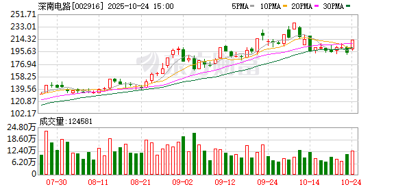 10月23日,深南电路跌5.04%,截至发稿,报191.81元/股,成交8.65亿元,换手率0.67%,总市值 1278.88亿元。 华夏沪深300ETF(510330)基金经理为赵宗庭。 截至发稿,赵宗庭累计任职时间8年192天,现任基金资产总规模3058.09亿元,任职期间最佳基金回报 123.57%, 任职期间最差基金回报-32.63%。 风险提示:市场有风险,投资需谨慎。本文为AI大模型自动发布,任何在本文出现的信息(包括但不 限于个股、评论、预测、图表、指标、理论、任何形式的表述等)均只作为参考,不构成个人投资建 议。 资料显示,深南电路股份有限公司位于广东省深圳市龙岗区坪地街道盐龙大道1639号,成立日期1984年 7月3日,上市日期2017年12月13日,公司主营业务涉及从事印制电路板的研发、生产及销售。主营业务 收入构成为:印制电路板60.01%,封装基板16.64%,电子装联14.14%,其他(补充)5.80%,其他产品 3.40%。 从深南电路十大流通股东角度 数据显示,华夏基金旗下1只基金位居深南电路十大流通股东。华夏沪深300ETF(510330)二季度增持 88.1万股,持有股数24 ...