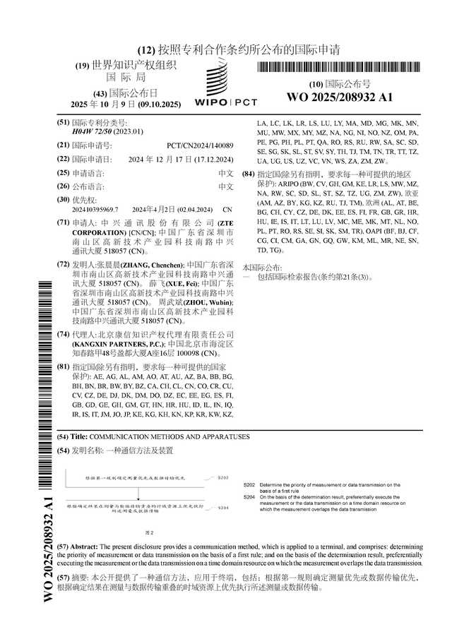 中兴通讯公布国际专利申请:“一种通信方法及装置”