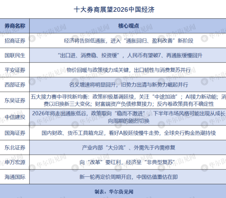 告别低通胀、AI接力新需求叙事,改革红利提振消费率......十大券商一文展望2026中国经济