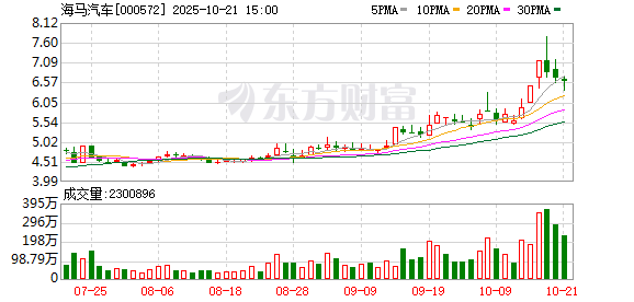 海马汽车:截至2025年10月20日公司股东人数是116019户