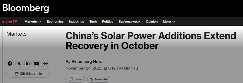 涉及的行业与公司 * 行业为中国可再生能源行业 特别是太阳能行业[1] * 公司包括上游多晶硅制造商通威股份[2] 下游逆变器制造商阳光电源和德业股份[1] 以及特定的组件制造商[1] 核心观点与论据 太阳能产业链价格与库存状况 * 上游多晶硅价格相对稳定 n型棒状硅周环比仅下降0.1%至每公斤51.9元人民币 颗粒硅价格维持在每公斤50.5元人民币[2] 主要受成本水平支撑[1][2] * 中游硅片和电池片价格因库存压力和淡季需求疲软而下降 182mm n型硅片价格周环比下降2.3%至每片1.26元 210mm产品下降1.8%至每片1.68元[3] TOPCon电池片平均价格周环比下降2.6%至每瓦0.30元[3] * 下游组件价格基本稳定 用于公用事业项目的TOPCon组件平均价格周环比微升0.2%至每瓦0.67元 用于分布式项目的价格微降0.3%至每瓦0.67元[4] * 库存水平高企 截至11月13日 生产商工厂的多晶硅库存周环比增加3.1%至26.7万吨[2] 硅片总库存周环比增加5.3%至18.4吉瓦[3] 太阳能玻璃平均库存周期周环比增加6.5%至25.6天[6] 供需动态与市场趋势 * 中国国内太阳能装机需求低迷 第三季度同比下降50.9%至28.7吉瓦[1][5] 主要受电价不确定性影响[5] * 组件出口需求强劲 第三季度同比增长43.6%至78.8吉瓦[1][5] 主要因预期中国太阳能行业反内卷政策以及2025年底可能取消组件出口增值税退税导致未来组件价格上涨[1][5] * 多晶硅供应预计在第四季度下降 中国有色金属工业协会硅业分会预测11月多晶硅产量将环比下降14%至12万吨 并在12月维持该水平 2025年全年产量预计同比下降27.8%至133万吨[2] 供应下降原因包括枯水期电价上涨[2] 反内卷政策[1][2] 以及西南地区部分工厂(如通威四川和云南工厂)停产[2] * 中游产出预期下降 硅片11月产量预计环比下降4.9%至57.7吉瓦[3] 电池片11月产量预计环比下降1.0%至58.7吉瓦[3] 组件11月产量预计同比下降6.8% 环比下降2.5%至46.9吉瓦[5] * 太阳能玻璃产能扩张慢于预期 截至11月13日 中国运营中的日熔融产能为88,590吨 同比减少9.8%[6] 投资偏好与周期展望 * 在太阳能板块中 更偏好逆变器公司(如阳光电源 德业股份) 因其受益于储能系统需求增长[1] * 同时偏好多晶硅制造商 因其可能获得更高的平均售价以及潜在的产能整合[1] * 也看好某些组件制造商 因从周期角度看最坏的时期似乎已经过去[1] 其他重要内容 * 报告包含对通威股份 德业股份 阳光电源三家公司的估值与风险分析[19][20][21][22][23][24] 目标价分别基于现金流折现模型 反映了对各自业务长期增长潜力的预期[19][21][23] * 报告提供了截至2025年11月19日当周的中国太阳能组件周度价格数据摘要[7] 显示了各环节价格的周环比 月环比和同比变化
