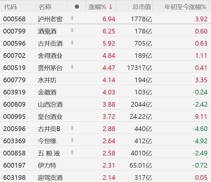 白酒股拉升,全线飘红