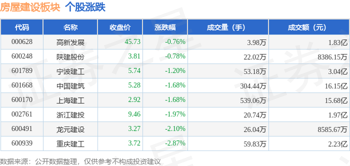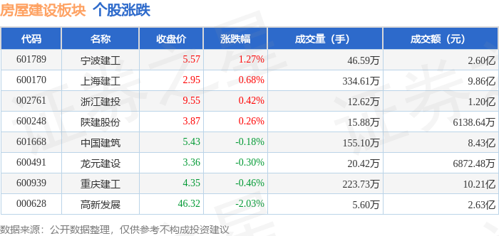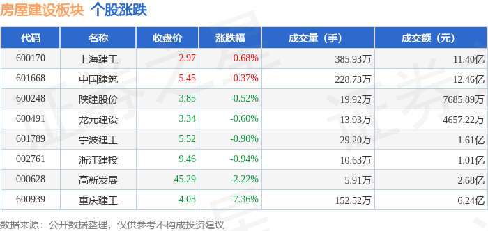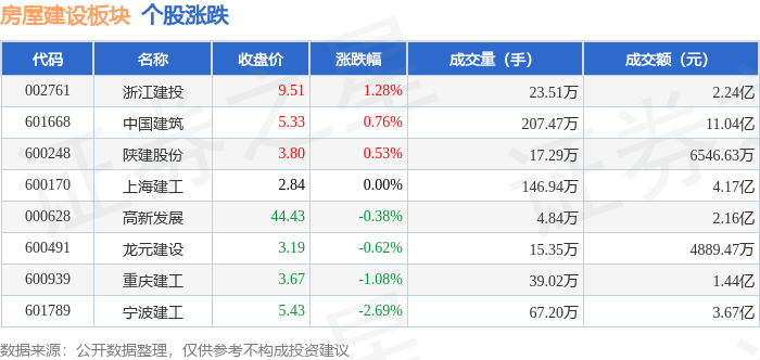 房屋建设板块11月6日跌0%,上海建工领跌,主力资金净流出183.24万元
