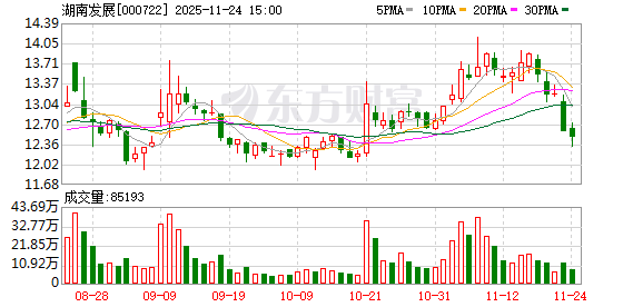 每经AI快讯,湖南发展(SZ 000722,收盘价:13.73元)11月14日晚间发布公告称,公司第十一届第三 十五次董事会会议于2025年11月14日以现场结合通讯表决方式召开。会议审议了《关于控股孙公司对外 出租土地并开展经营合作的议案》等文件。 2025年1至6月份,湖南发展的营业收入构成为:水力发电业占比79.46%,砂石占比16.61%,投资管理 占比3.93%。 截至发稿,湖南发展市值为64亿元。 每经头条(nbdtoutiao)——展望"十五五"|专访财科院院长杨志勇:遏制地方政府新增隐性债务,债务 信息要透明,尽可能降低利息成本 (记者 曾健辉) ...