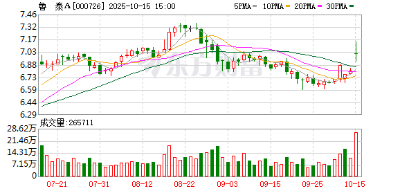 分红方面,鲁泰AA股上市后累计派现55.51亿元。近三年,累计派现4.79亿元。 资料显示,鲁泰纺织股份有限公司位于山东省淄博市淄川区松龄东路81号,成立日期1988年10月18日, 上市日期2000年12月25日,公司主营业务涉及生产销售棉涤纶纱、色织布、衬衣、服装饰品、保健内衣 等纺织品及配套系列产品。主营业务收入构成为:面料产品65.46%,衬衣产品27.31%,电和汽4.92%, 其他2.32%。 鲁泰A所属申万行业为:纺织服饰-纺织制造-棉纺。所属概念板块包括:破净股、低市盈率、长期破 净、证金汇金、新零售等。 截至6月30日,鲁泰A股东户数4.74万,较上期增加0.39%;人均流通股0股,较上期增加0.00%。2025年 1月-6月,鲁泰A实现营业收入28.27亿元,同比减少0.12%;归母净利润3.60亿元,同比增长112.44%。 10月21日,鲁泰A盘中上涨2.27%,截至13:00,报7.20元/股,成交8370.15万元,换手率2.00%,总市值 58.85亿元。 资金流向方面,主力资金净流入1539.46万元,特大单买入1087.73万元,占比13.00%,卖出102.60万 元,占比 ...