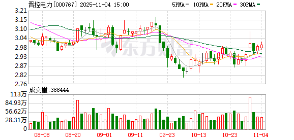 机构持仓方面,截止2025年9月30日,晋控电力十大流通股东中,香港中央结算有限公司位居第十大流 通股东,持股2025.88万股,相比上期减少82.64万股。 11月5日,晋控电力盘中上涨2.00%,截至10:24,报3.06元/股,成交8565.19万元,换手率0.97%,总市 值94.15亿元。 资金流向方面,主力资金净流出190.94万元,特大单买入1204.89万元,占比14.07%,卖出740.97万元, 占比8.65%;大单买入1517.40万元,占比17.72%,卖出2172.26万元,占比25.36%。 晋控电力今年以来股价涨20.95%,近5个交易日涨4.08%,近20日涨7.75%,近60日涨0.99%。 资料显示,晋能控股山西电力股份有限公司位于山西示范区晋阳街南一条10号1幢-1-22层,成立日期 1993年2月8日,上市日期1997年6月9日,公司主营业务涉及火力发电及热力的生产和供应。主营业务收 入构成为:火电电力74.04%,燃煤40.03%,热力7.73%,光伏电力6.07%,其他业务5.52%,风电电力 5.12%,检修服务1.60%,水电电力1.07%。 晋控电力所属申万行 ...