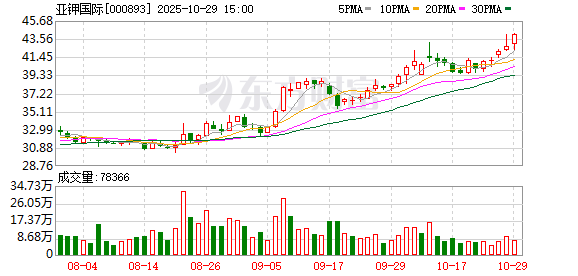"特劳特"来了。 亚钾国际的钾肥扩产建设工作仍在持续推进。据半年报披露,目前公司拥有300万吨/年氯化钾选厂产能装置,公司正在加快推进第二个、第三个100万吨/年钾肥项 目的矿建工作。同时,公司拥有近90万吨/年颗粒钾产能,未来公司将进一步通过技术创新手段来优化产品品质。 10月29日,A股化肥板块龙头亚钾国际(000893)披露三季报,在钾肥价格攀升与公司产能释放双重驱动下,公司前三季度营收达38.67亿元,同比增长55.76%;归 母净利润13.63亿元,同比激增163.01%。 值得关注的是,全球顶级战略咨询机构特劳特咨询有限公司(简称"特劳特")以852.85万股持股量新晋公司第十大流通股东,引发市场关注。 钾肥龙头业绩暴增 亚钾国际三季报显示,公司第三季度实现营收13.45亿元,同比增长71.37%;归属于上市公司股东的净利润为5.08亿元,同比增长104.69%。前三季度实现营收38.67 亿元,同比增长55.76%;归属于上市公司股东的净利润为13.63亿元,同比增长163.01%。 亚钾国际业绩增长与公司产能释放密切相关。2025年上半年公司氯化钾产量为101.41万吨,同比增长20%;销量达 ...