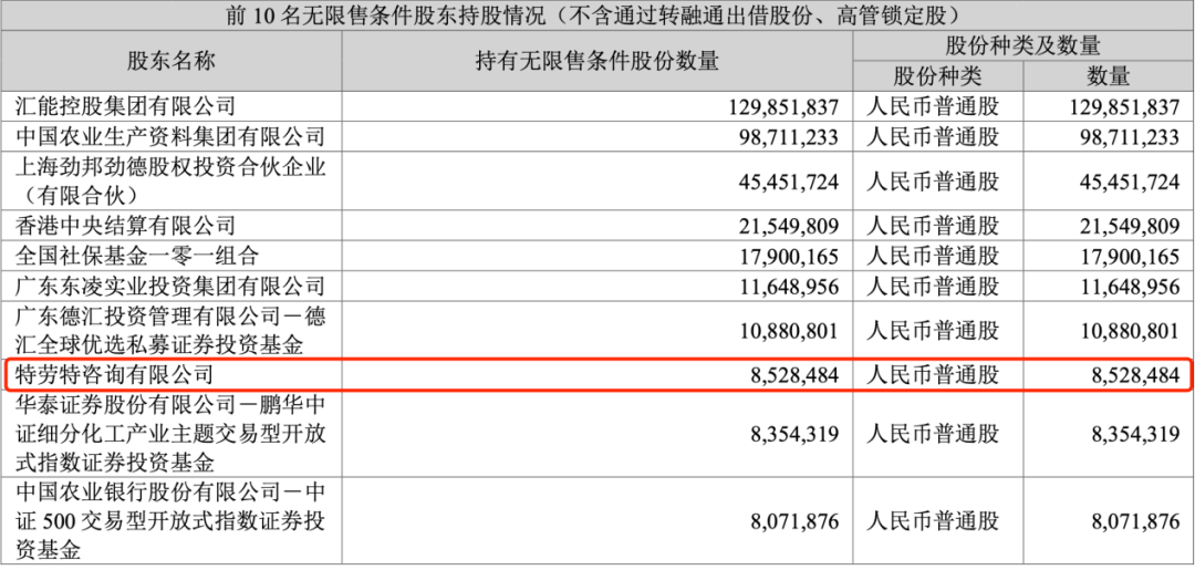 "特劳特"来了。 10月29日,A股化肥板块龙头亚钾国际(000893)披露三季报,在钾肥价格攀升与公司产能释放双重驱动下,公司前三季度营收达38.67亿元,同比增长 55.76%;归母净利润13.63亿元,同比激增163.01%。 值得关注的是,全球顶级战略咨询机构特劳特咨询有限公司(简称"特劳特")以852.85万股持股量新晋公司第十大流通股东,引发市场关注。 钾肥龙头业绩暴增 顶级咨询机构现身 在业绩爆发的同时,亚钾国际的股东结构出现显著变化。三季报显示,特劳特以852.85万股持股量新晋第十大流通股东,占流通股比例1.05%。 | | | 日日 秋月 | | | --- | --- | --- | --- | | 股东名称 | 持有无限售条件股份数量 | 股份种类及数量 | | | | | 股份种类 | 数量 | | 汇能控股集团有限公司 | 129,851,837 | 人民币普通股 | 129,851,837 | | 中国农业生产资料集团有限公司 | 98,711,233 | 人民币普通股 | 98,711,233 | | 上海劲邦劲德股权投资合伙企业 (有限合伙) | 45.451.724 | 人 ...